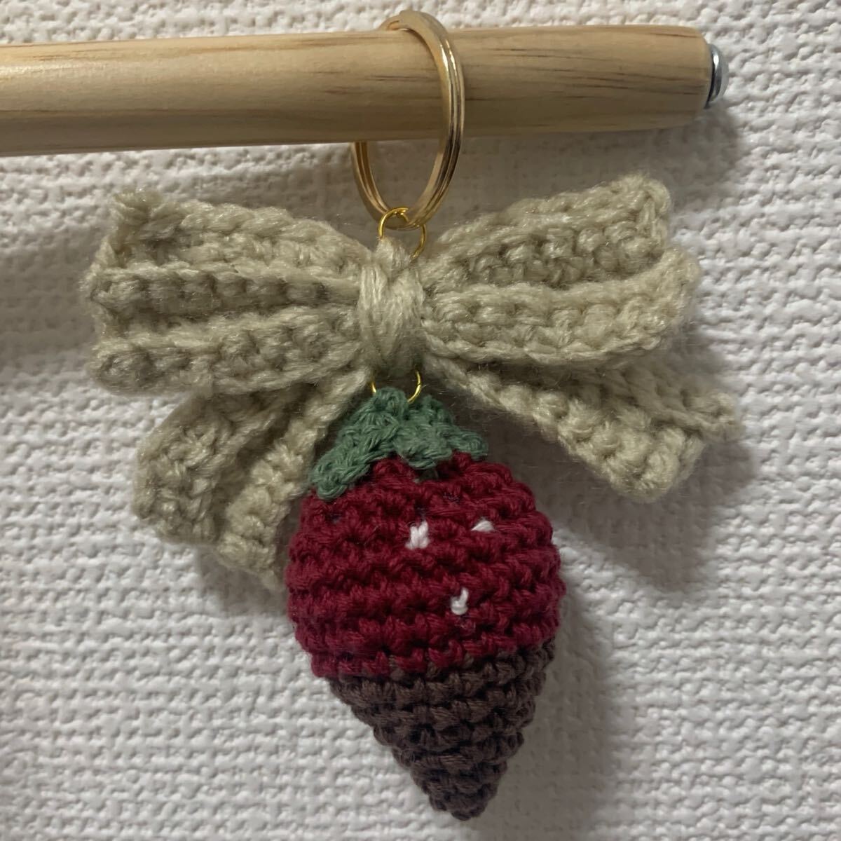 - 【b5】レトロ ロリータ ベージュリボン チョコ苺 キーホルダー ストラップ
