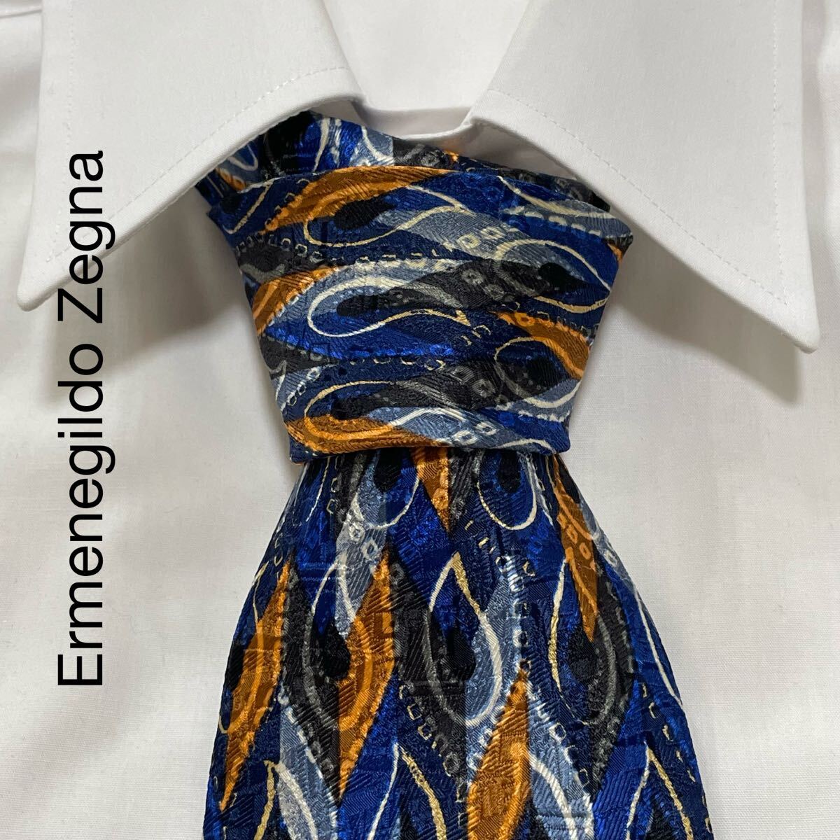 - Ermenedildo Zegna エルメネジルドゼニア パターン柄 シルク ネクタイ イタリア製 ブルー オレンジ ブラック ホワイト TG1162
