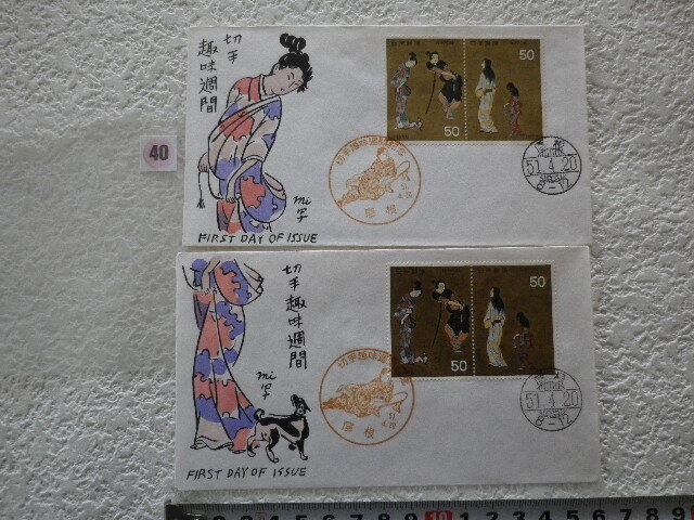 - FDC 切手趣味週間 1976年 カシェ違い2枚 2貼2消 解説書有 松屋●40●同梱大歓迎