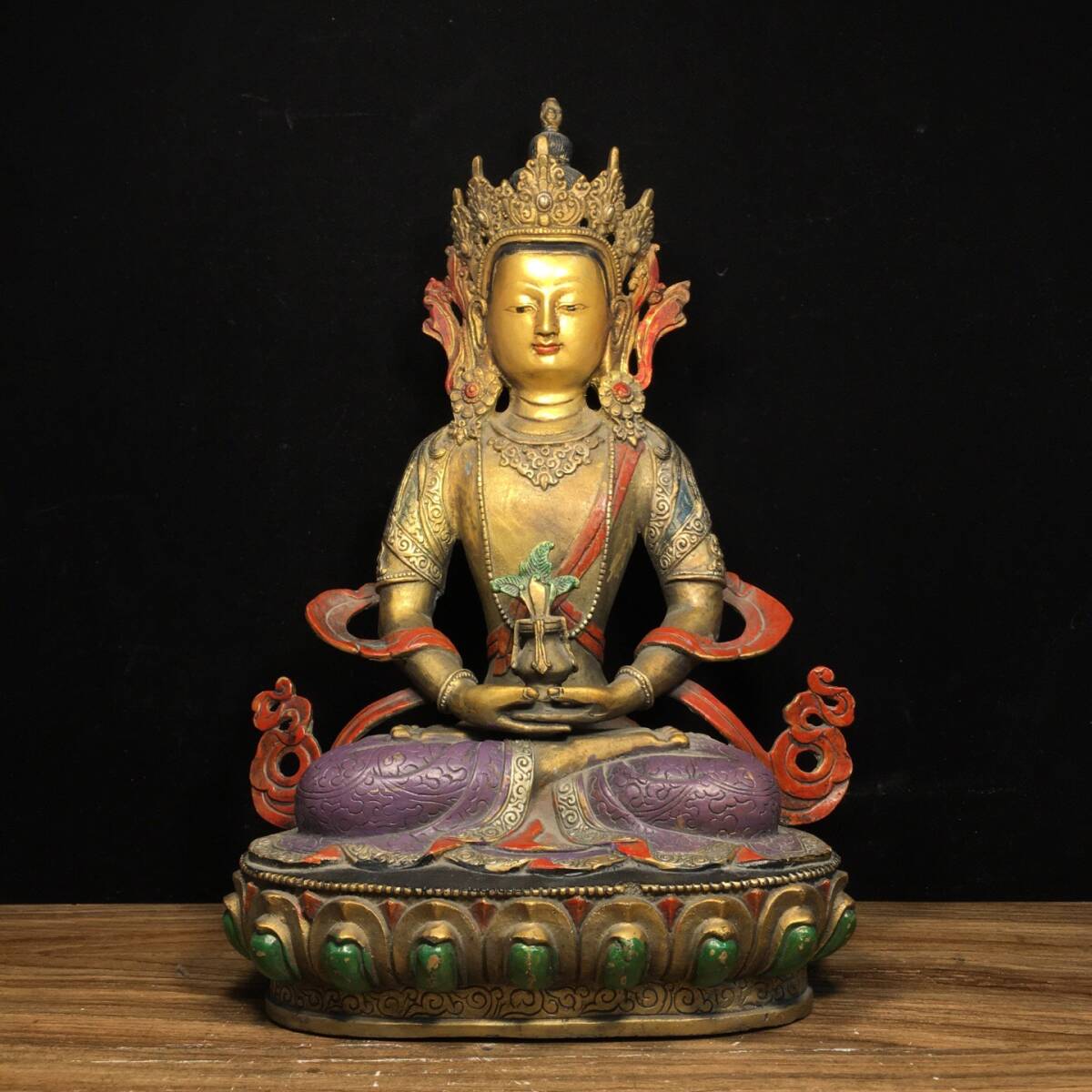 - 『館蔵珍品 銅製 金鍍 彩繪 長寿仏』置物 賞物 貴重物品 収蔵品 中国古美術