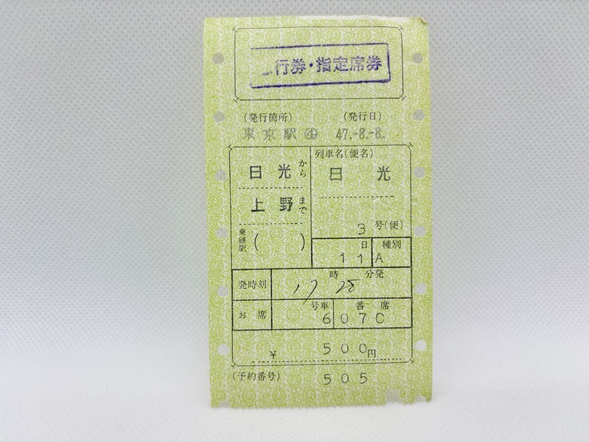 - 国鉄 マルス券 急行日光3号 日光→上野 157系 165系 縦型 初期型 急行券 指定席券 昭和レトロ 切符