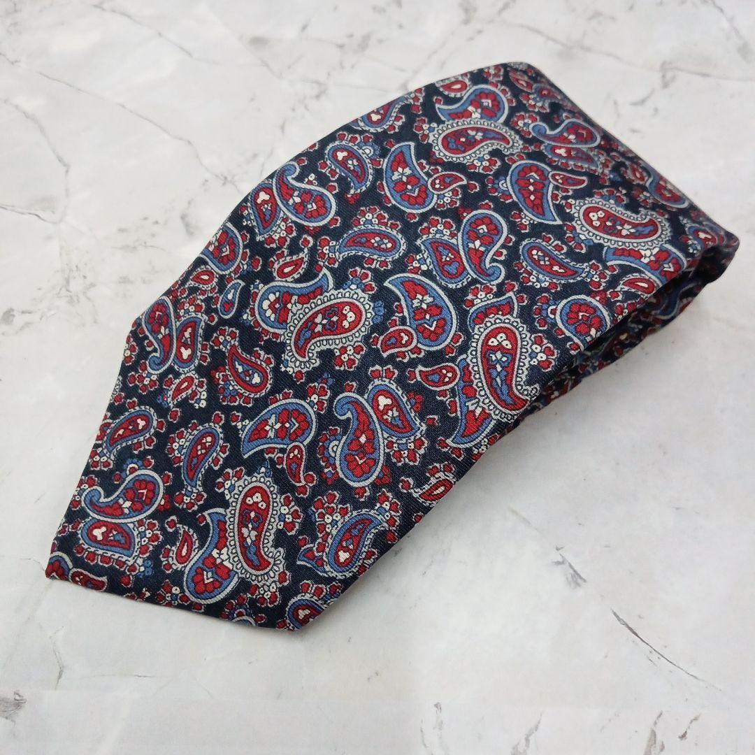 - クリスチャンディオール ネクタイ 紺 水色赤白 ペイズリー柄 シルク【n671】