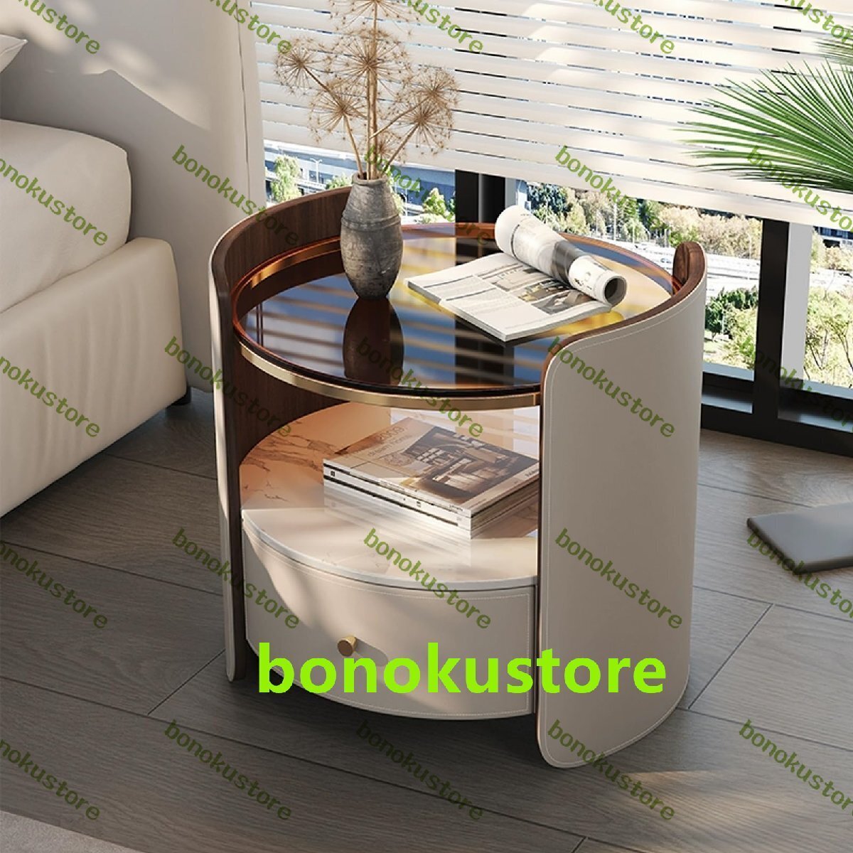 - モダンなナイトテーブル サイドチェスト 引き出しとオープン収納付き ベッドサイドテーブル 寝室用の小 サイドキャビネット (Gray)