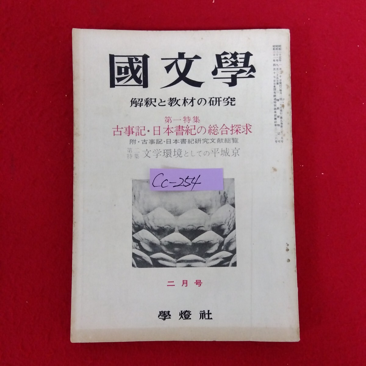 - Cc−254/國文學 解釈と教材の研究 古事記・日本書紀の総合探求 昭和35年1月20日発行 文学環境としての平城京/L10/70312