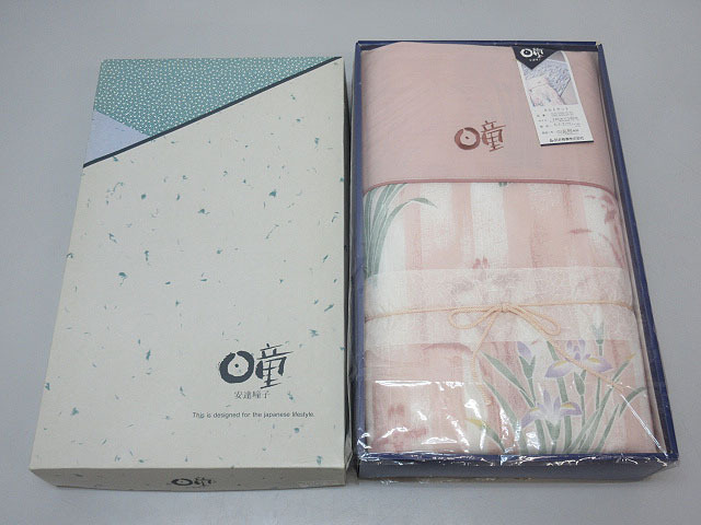 > ★sz2621 未使用品 安達瞳子 キルトケット(あやめ) ピンク系 140cm×190cm 箱付き 5180.A682 瞳 武井商事 寝具★