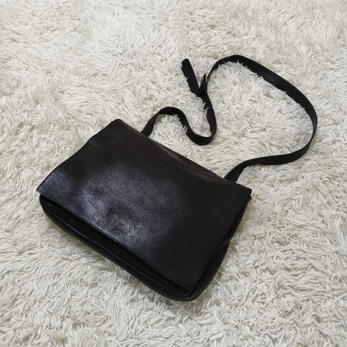 > ☆DAKOTA ダコタ ショルダーバッグ 刻印ブランドロゴ ブラック レザー フラップ シンプル アーカイブ 肩掛け 斜め掛け 日本製 鞄 古着 USED