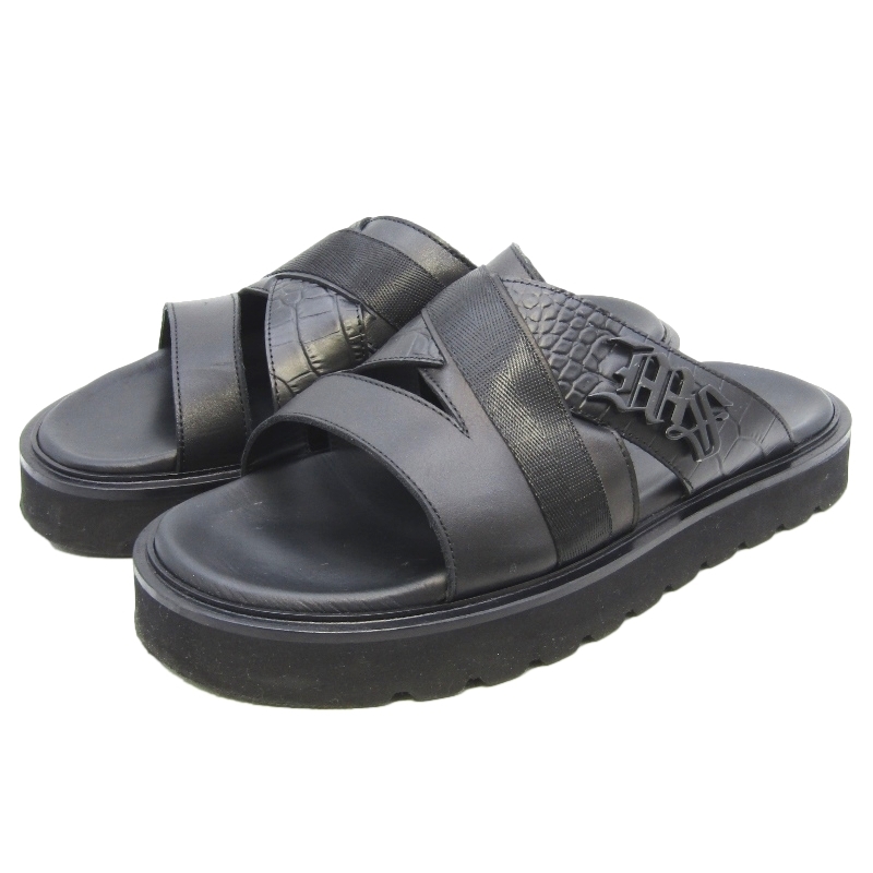 - MICH SIMON ミックシモン 43 レザーサンダル 1158-01 エキゾチック型押しコンビ カーフ イタリア製 BLACK ブラック 黒 35004121