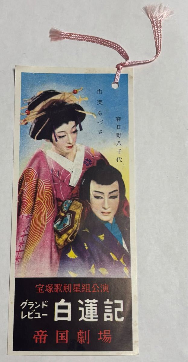 - 宝塚歌劇団 「 永遠のニ枚目 白薔薇のプリンス 宝塚の至宝 春日野八千代 白蓮記 昭和28年 帝国劇場 星組公演 由美あづさ 栞 しおり 」