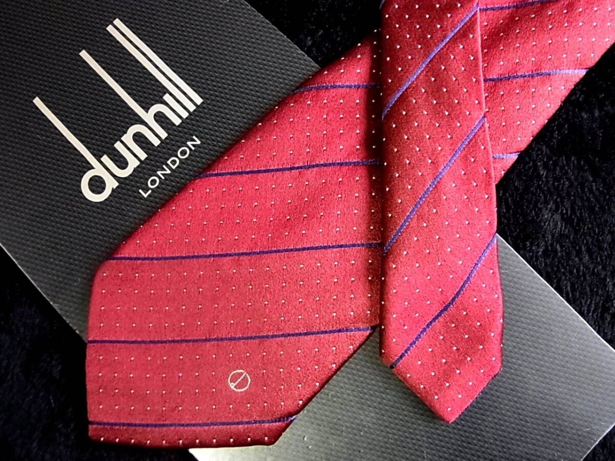 - ■E5519N●良品●【dunhill】ダンヒル【ロゴ ストライプ】 ネクタイ★