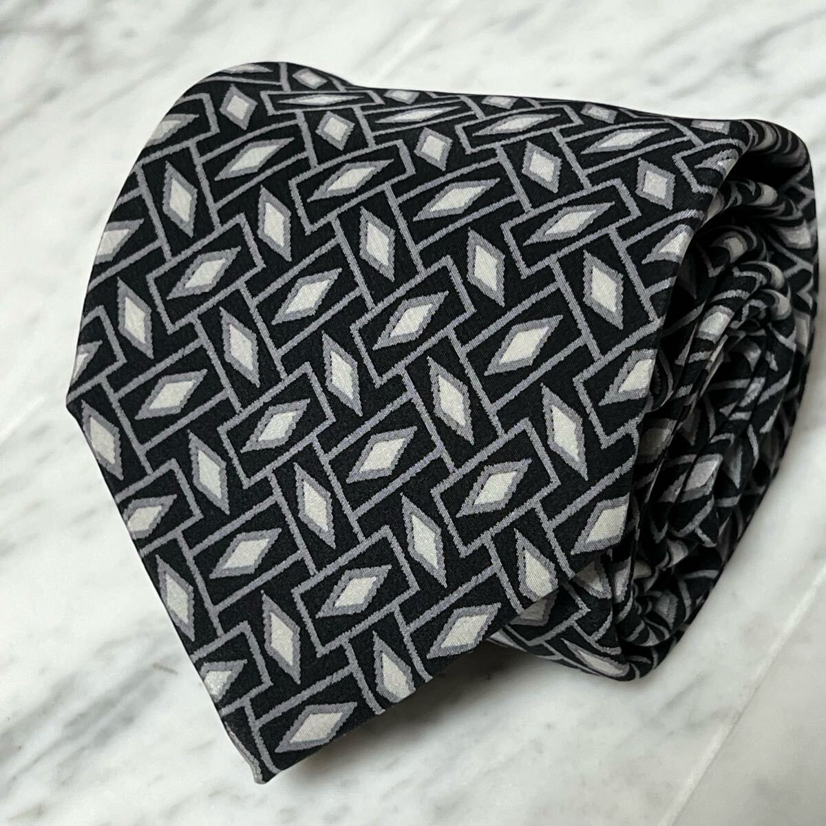 - 【美品】 999円~ VALENTINO ネクタイ ブラック グレー パターン柄 (GB3)
