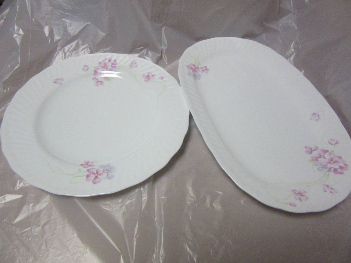 - ★サンリエ ボーンチャイナ ピンク系花柄 楕円皿 丸皿 各1枚ずつ★