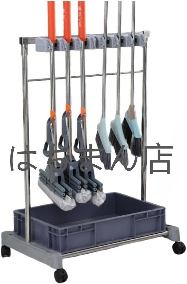 > モップホルダー 掃除用具 収納 フック付き 区分け収納 ステンレス鋼製 耐荷重300kg 多機能 大容量 頑固 耐久性 (6掛け8フック)