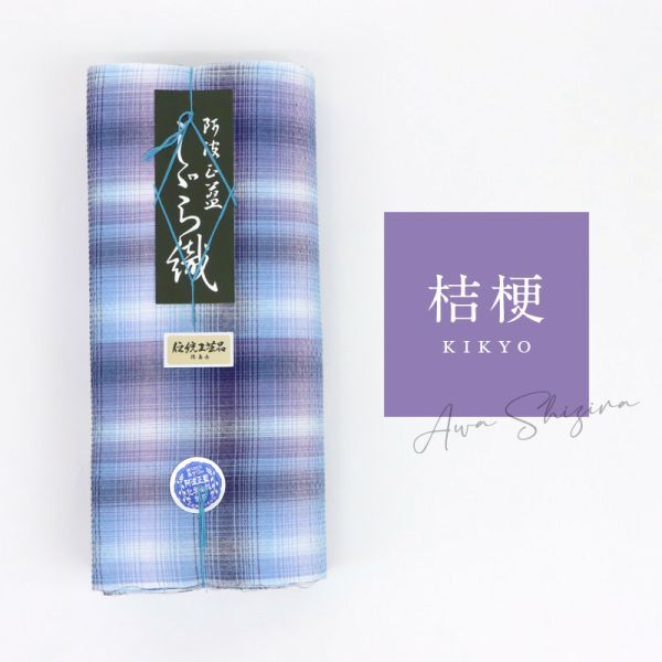 > 【阿波しじら】 『反物』 グラデーションチェック 桔梗 D10 青紫 チェック 13m 女性用 木綿 洗える 夏着物 浴衣 お仕立て可 【針子】
