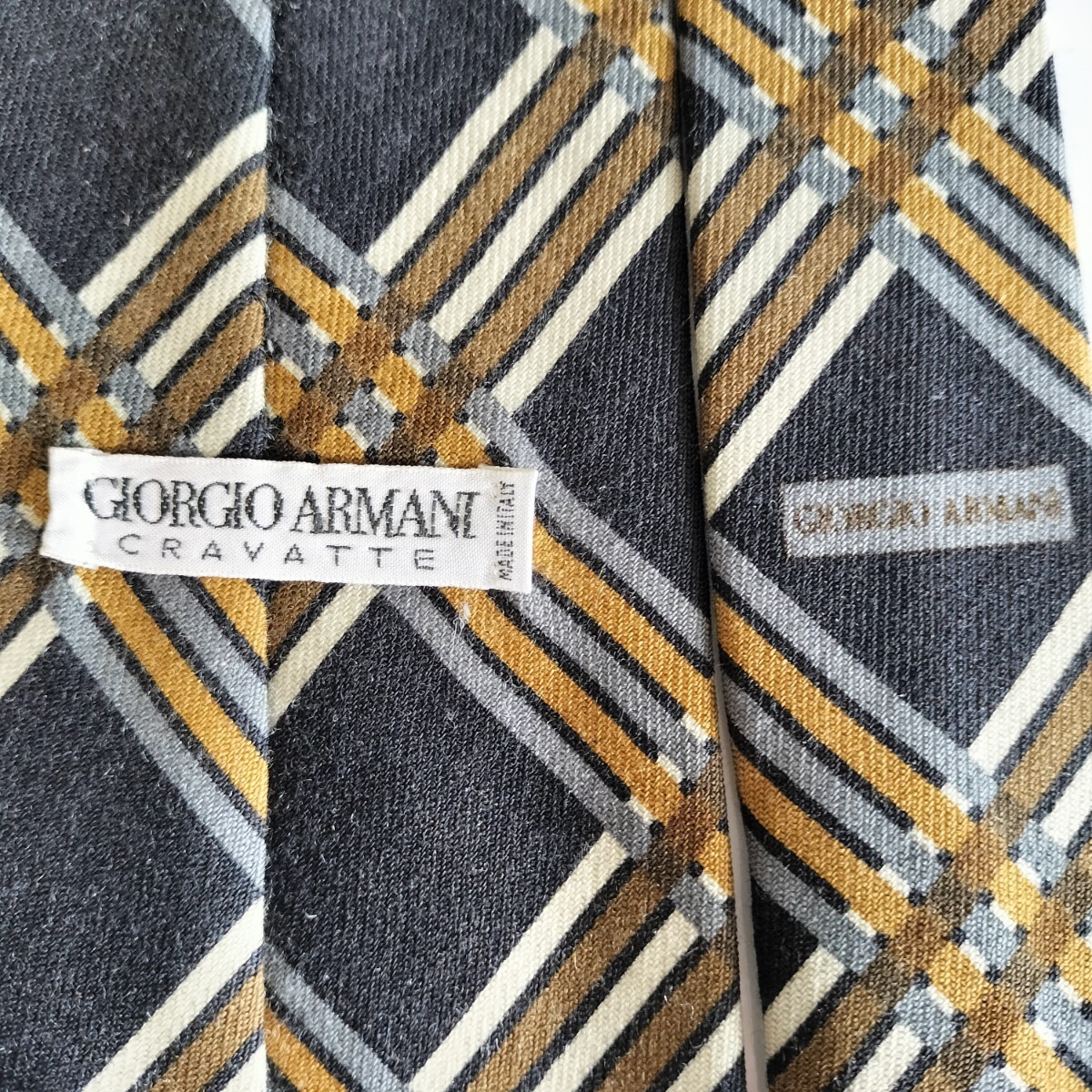- GIORGIO ARMANI(ジョルジオアルマーニ)黒オレンジグレー線チェックネクタイ