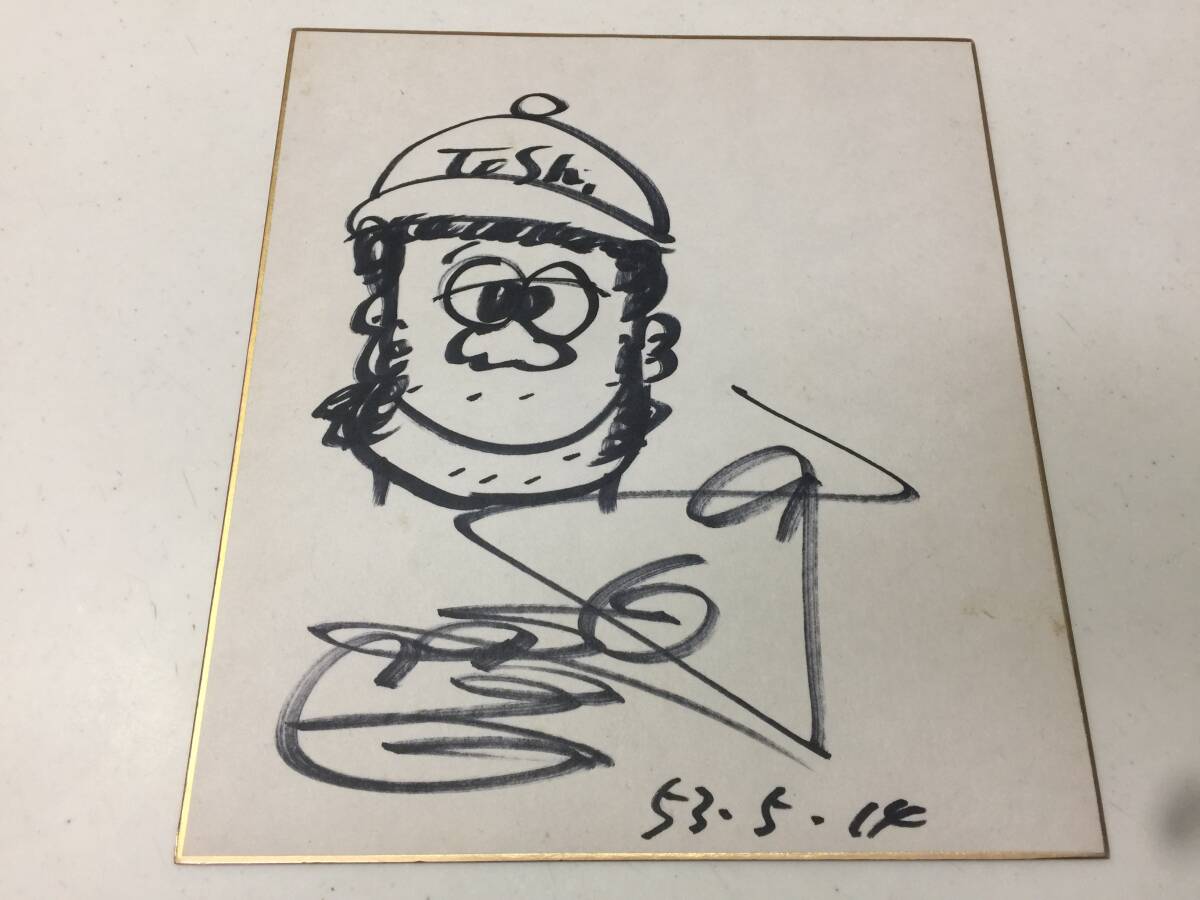- 西田敏行 直筆サイン 色紙 イラスト 芸能人 歌手 俳優 53.5.14 昭和レトロ 当時物 KJ2