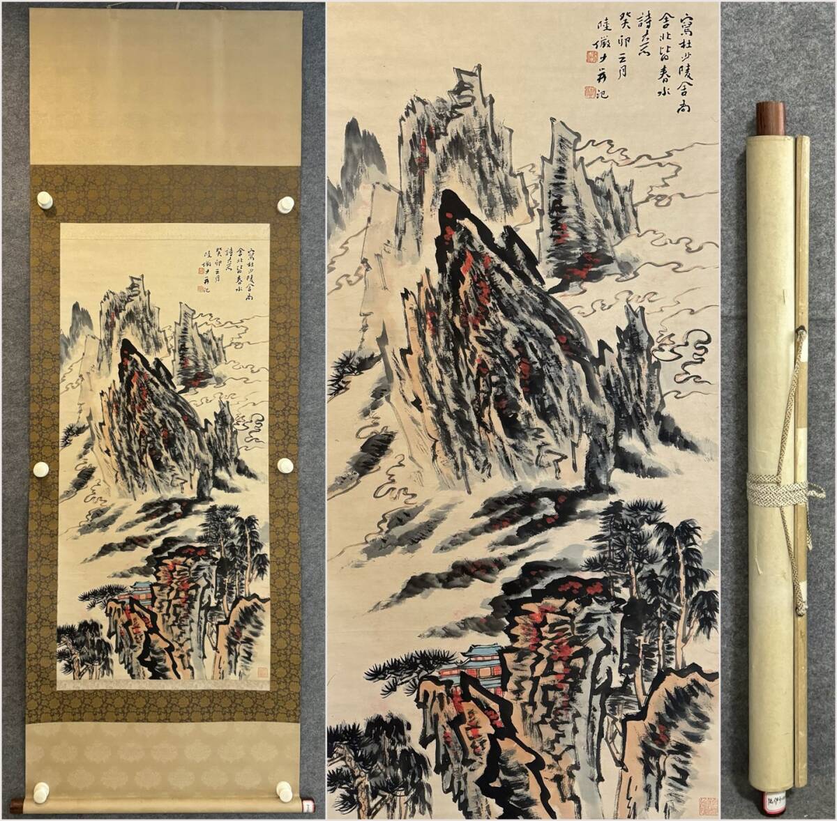 > 古美術 掛け軸 中国・近現代 「陸儼少書」 紙本 【山水図】 立軸 書道 巻き物 肉筆保証 唐物 古画 画心103x49.5cm LT-2503171