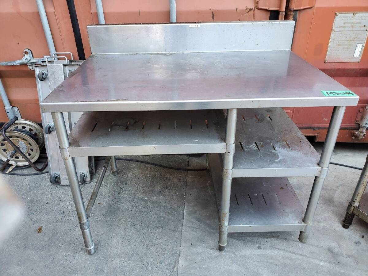 > M3044-5【綺麗に洗浄して発送致します!】作業台 W1100×D750×H810+BG150㎜ ステンレス 中棚 棚2段 W1000/W1200/厨房/業務用/飲食店