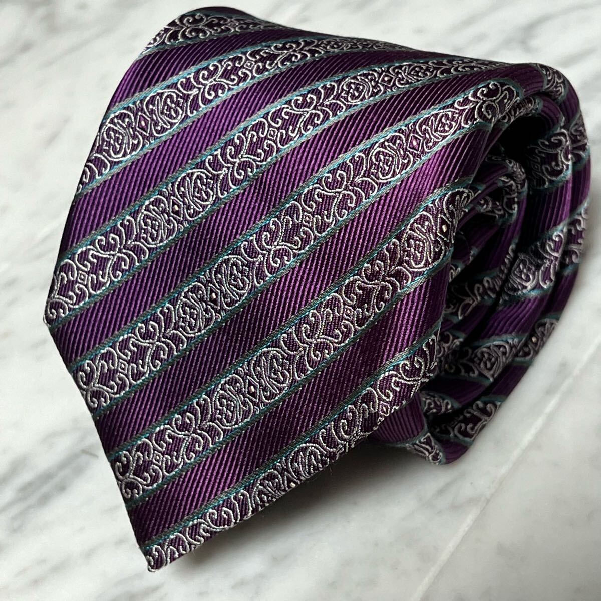 - 【美品】 999円~ SAVILE ROW ネクタイ ストライプ パープル グレー (R5)