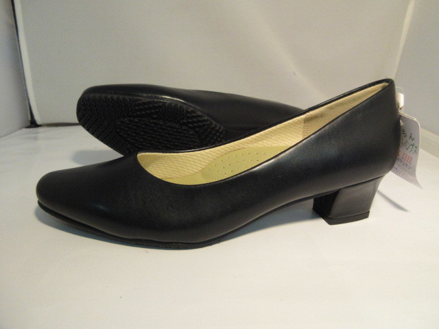 - 22 レディース パンプスシューズ15 プレーン 黒色 合成皮革 履きやすい高さの4cm 幅広 4E幅 ¥4290