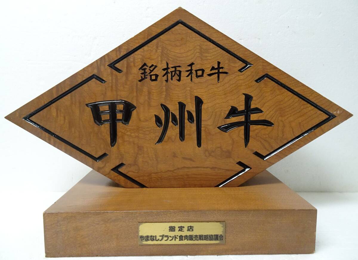 - 山梨 銘柄和牛「甲州牛」指名店 牛肉 無垢板 厚さ7.0cm 木彫 看板 置看板/焼肉/ステーキ/すき焼き/お肉屋