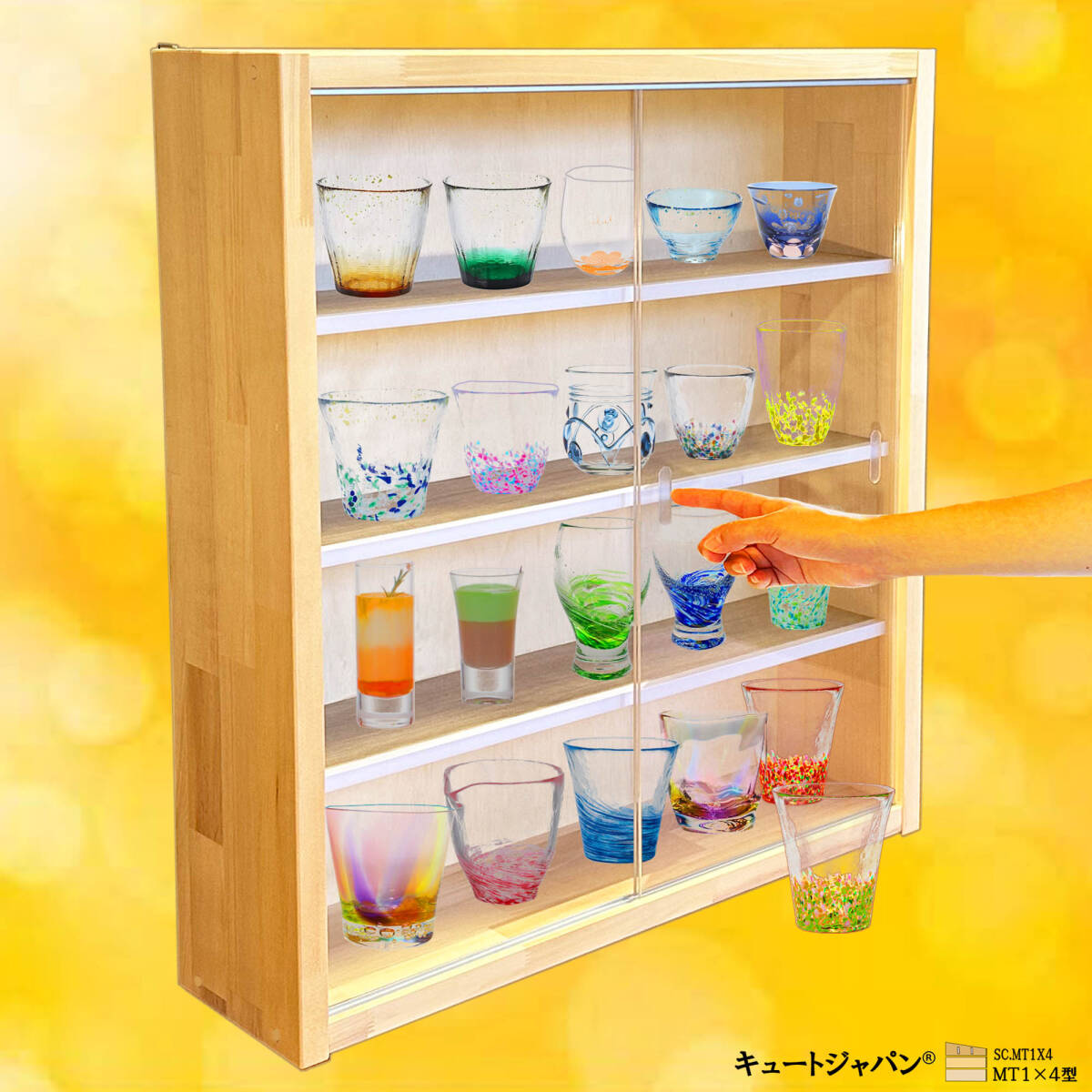 - 【値下げ★送料無料】食器 プチグラス グラス コップ 茶碗 収納 コレクションケース ショーケース アクリル障子付 日本製 MT1×4型