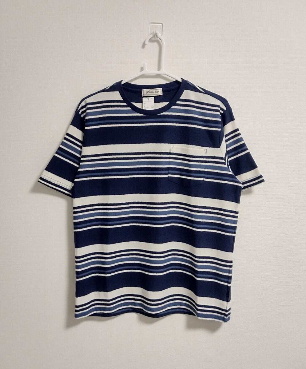 > 【新品タグ付】Golden bear タオル地 ボーダー Tシャツ Lサイズ ゴールデンベア ネイビー ポケT