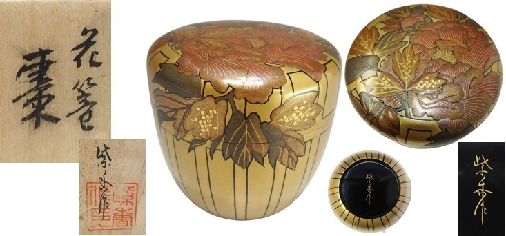 - 《ジャムルK》Kg1008-31◆送料無料◆ 谷内一則(紫香)作 花篭 輪島塗 金蒔絵 棗 茶道具
