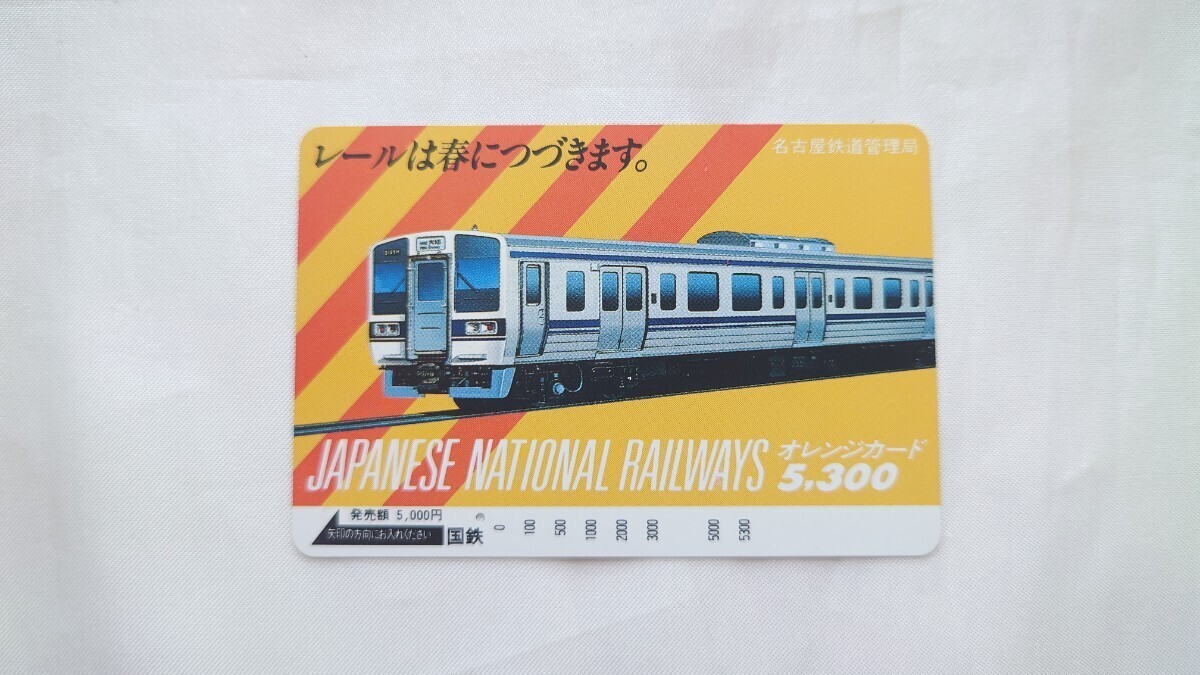- △国鉄名古屋管理局△レールは春につづまきます△記念オレンジカード5300円券1穴使用済み