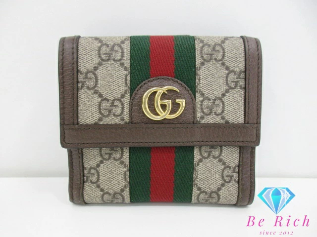 > グッチ GUCCI オフィディア フレンチ フラップ ウォレット 523173 エボニー シェリー ウェブ GG スプリーム 【中古】【送料無料】 bs3994