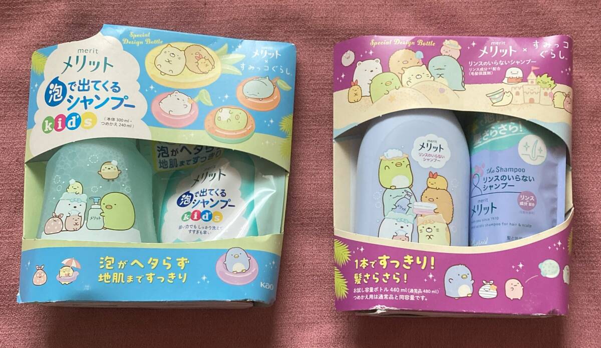 > ★☆送料600円可すみっコぐらしメリット泡で出てくるシャンプーキッズ ポンプ&リンスのいらないシャンプー ポンプつめかえ付2セット限定品