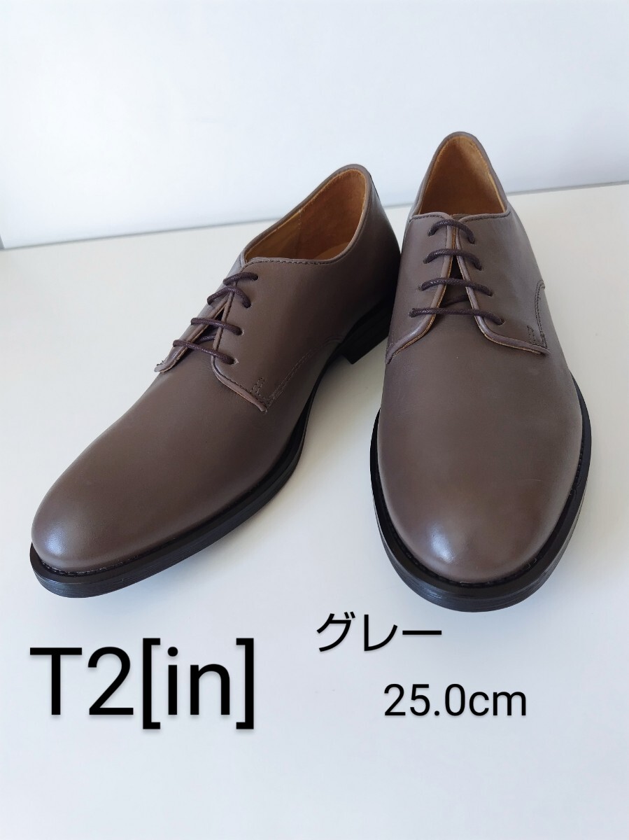 - 未使用品 T2[in] ツイン メンズ40 プレーントゥ レースアップ ビジネスシューズ 25.0相当 グレー レザーシューズ