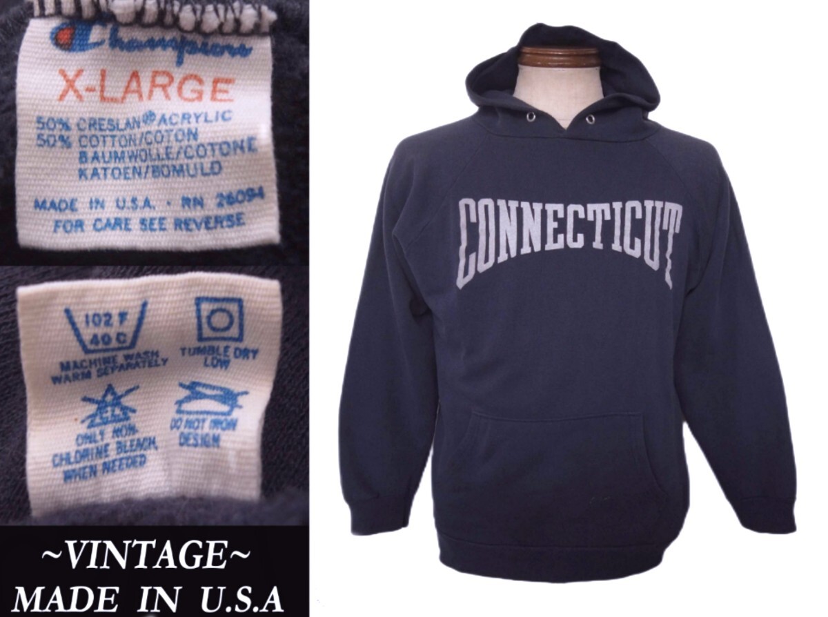 - ビンテージ champion トリコタグCONNECTICUT コネチカット大学 USAアメリカ製 パーカーVINTAGEウエアハウス RRL マッコイズ model ランタグ