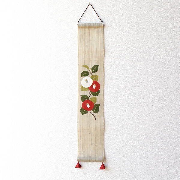 - タペストリー おしゃれ 壁掛け 和風 和モダン 麻 縦長 細長い 小さめ 小さい 豆タペストリー 寒つばき 送料無料(一部地域除く) wlj5827