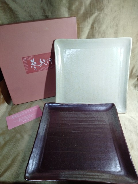 - 夢紀行組皿 金茶 21x2cm 2枚 1枚の角皿に数点の盛り付け 和洋可