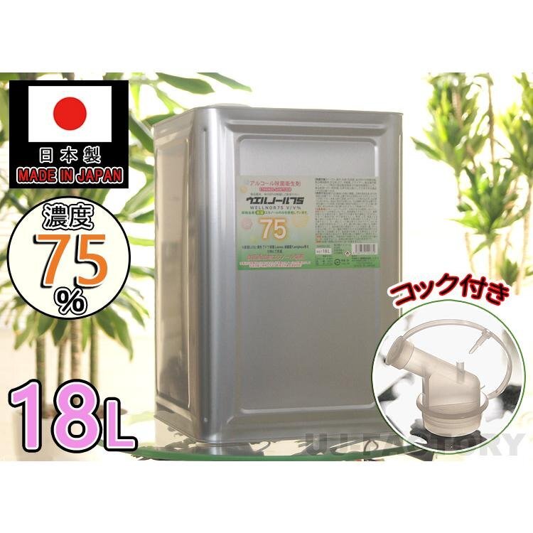 - ★送料無料(地域限定)★日本製 ウエルノール75 18L(一斗缶)コック付き/ウエルシー製薬【1本】 除菌/抗菌 インフルエンザ 食中毒対策に!