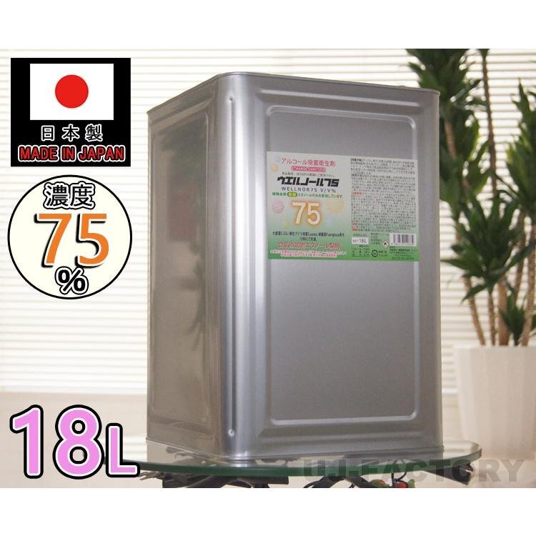 - ★送料無料(地域限定)★日本製 ウエルノール75 18L(一斗缶)コック無し/ウエルシー製薬【1本】 除菌/抗菌 インフルエンザ 食中毒対策に!