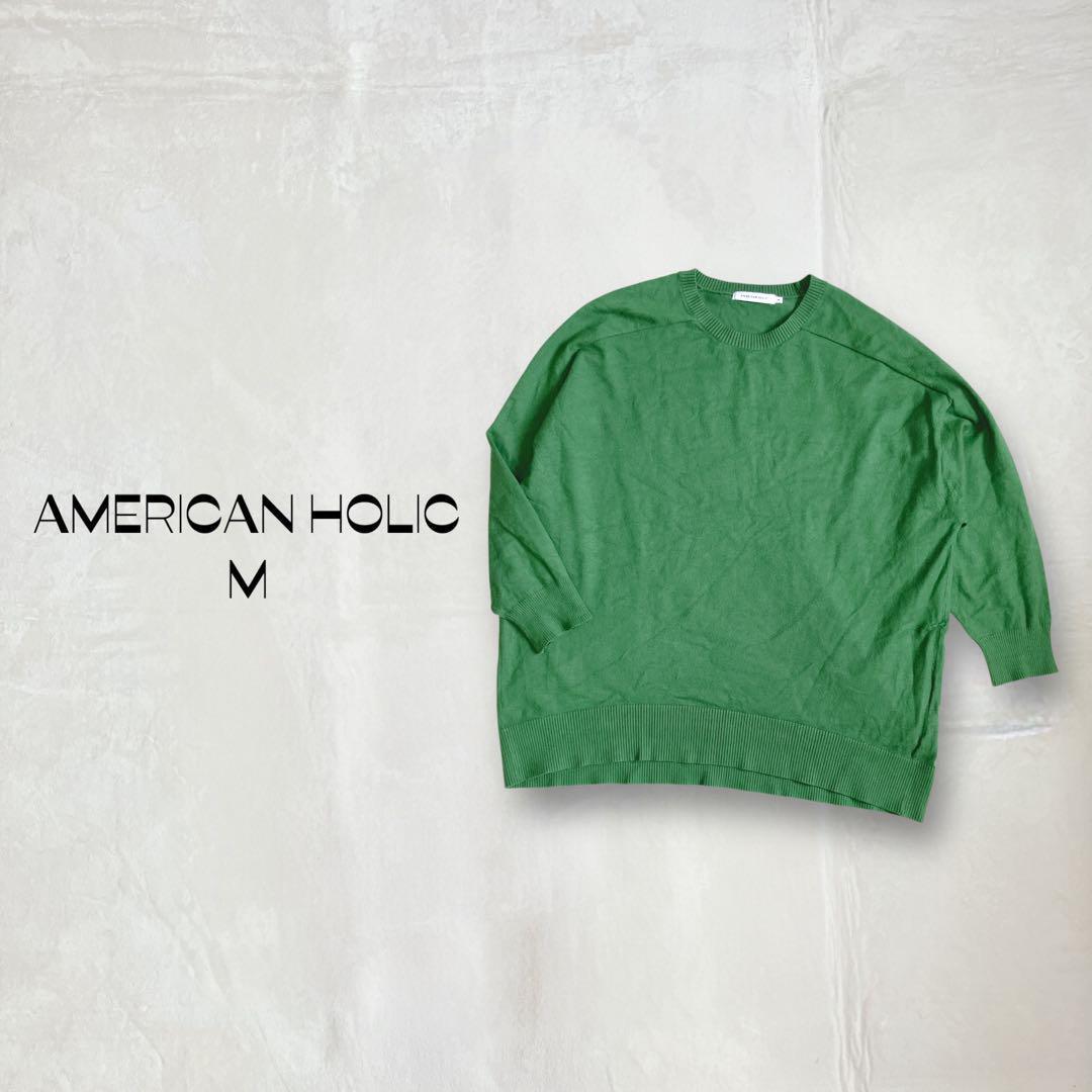 - アメリカンホリック 薄手ニット セーター【M】グリーン クルーネック