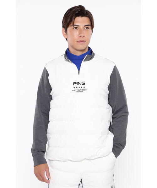 - 即決新品 PING GOLF ハーフジップ起毛/全方向ストレッチ杢MIX加工中綿 Sサイズ Mサイズ相当 ホワイト/グレー ピンゴルフ