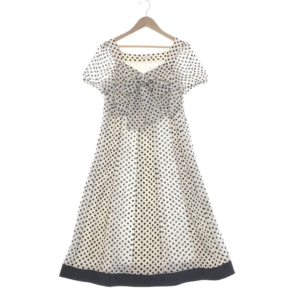 > ★TO BE CHIC トゥービーシック ドット柄 半袖 Aラインワンピース ドレス サイズ40 レディース ホワイト×ブラック UM536-341-01 1BA/91876