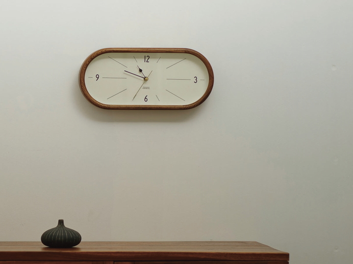 > 掛け時計 ブラウン 壁掛け時計 ウォールクロック 北欧 モダン ミッドセンチュリー おしゃれ 音がしない スイープムーブメント 楕円形
