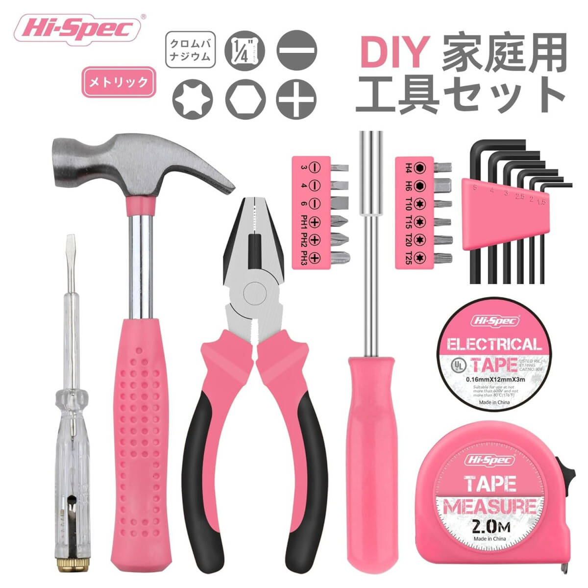 - DIY 家庭用 工具セット ピンク 24点 ツールキット ケース付き コンパクトハンドツール 工具箱 メンテナンス 修理 初心者用