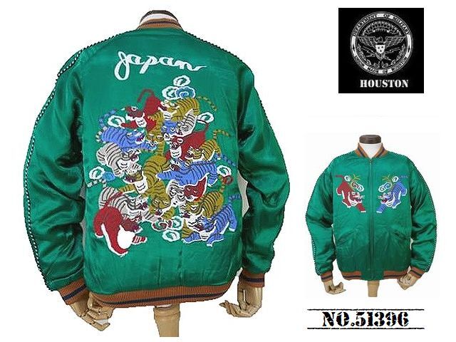 - 【送料無料 26%OFF】HOUSTON ヒューストン レーヨン スカジャン SOUVENIR JACKET 「百虎柄」 NO51396 GREEN_Mサイズ