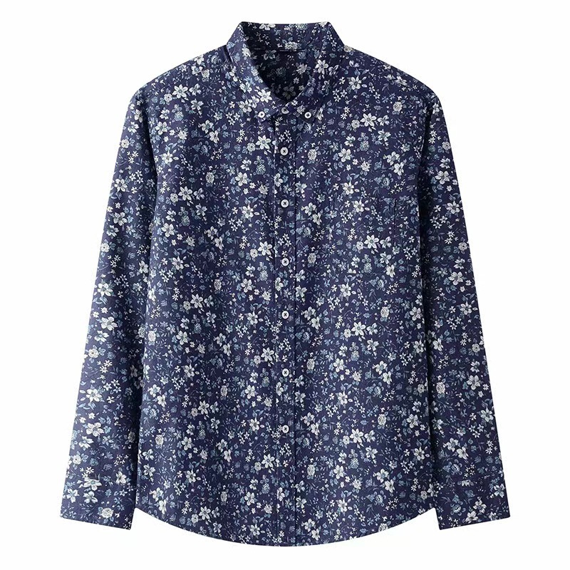 - 新入荷高品質L紺色 オールコットン素材新品 メンズ 綿100% 花柄 長袖シャツ 防シワ 吸湿性があり 細身 春秋 ビジネス カジュアル トップス