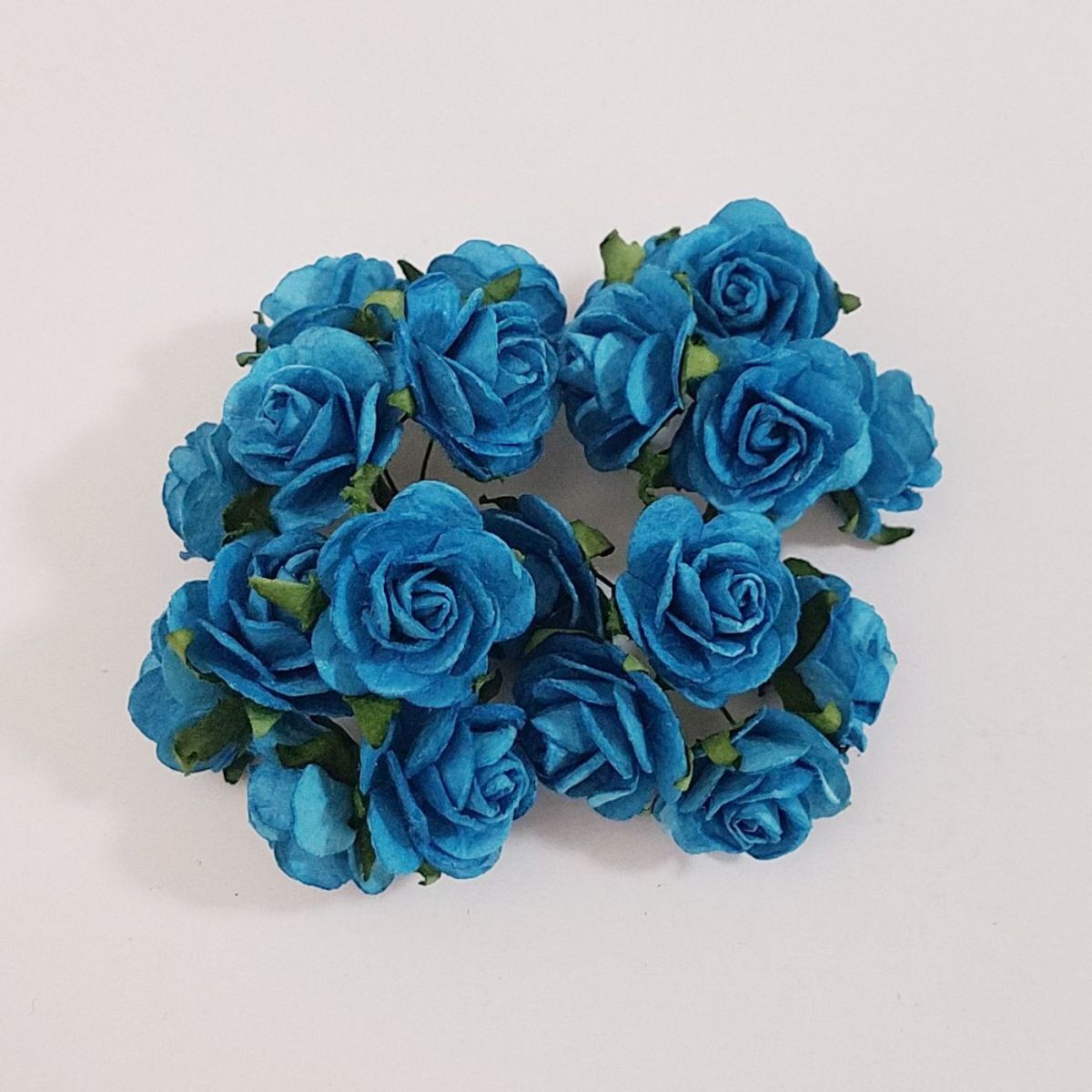 - 造花[ミニ・ペーパーフラワー バラ(シアン #265) 直径約25mm 20本] ハンドメイド リース アートフラワー コサージュ