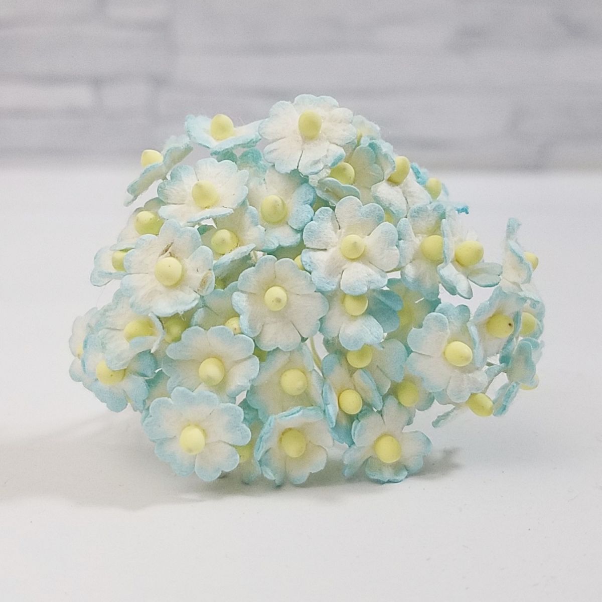 - 造花[ミニ・ペーパーフラワー ハートの花びら(バイカラー/ライトブルー&白 #560) 直径約10mm 50本] 手作り ハンドメイド