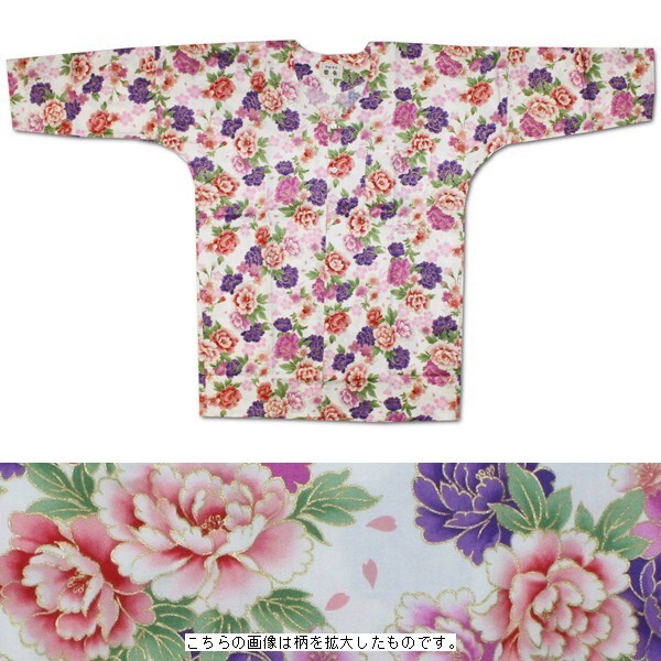 - お祭用品/肉襦袢 鯉口シャツ 牡丹と桜ラメ 217白 4号(子ども用)
