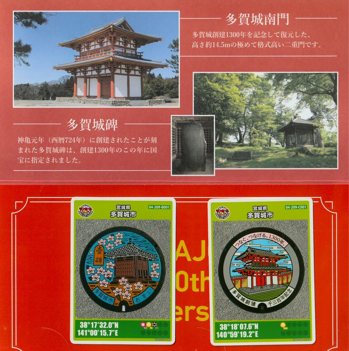 - ★多賀城創建1300年記念【マンホールカード 2種類セット 台紙】★非売品 宮城県 多賀城市 多賀城南門 多賀城碑 覆屋 桜