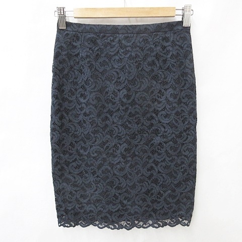 - ノーブル NOBLE タイトスカート ひざ丈 レース 紺 ネイビー 36 レディース