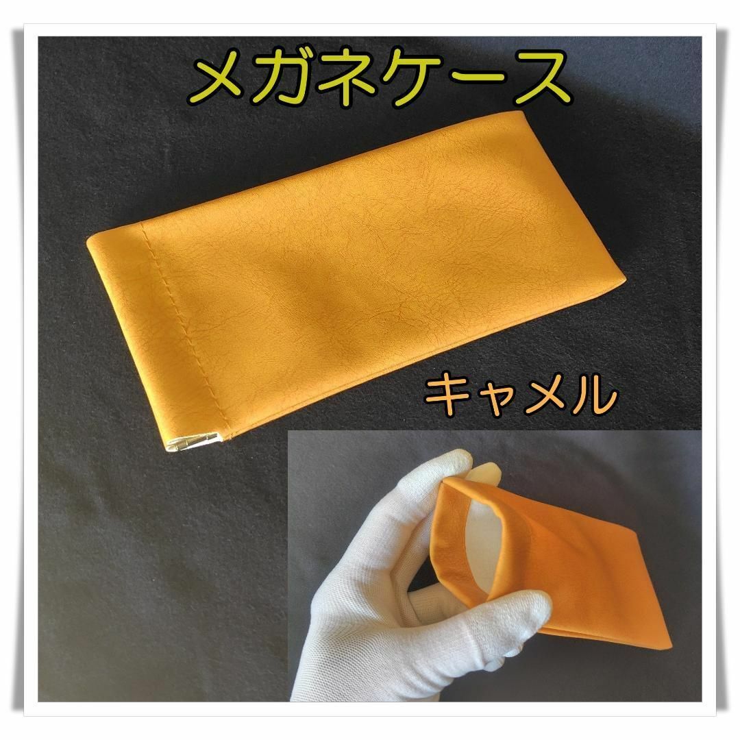 - メガネケース キャメル 薄型 レザー調 サングラスケース 眼鏡ケース 弾性開閉