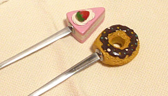 - ★美品激安★チョコドーナツ&イチゴケーキがついた小さくて可愛いスプーン2本♪スイーツ♪洋菓子♪
